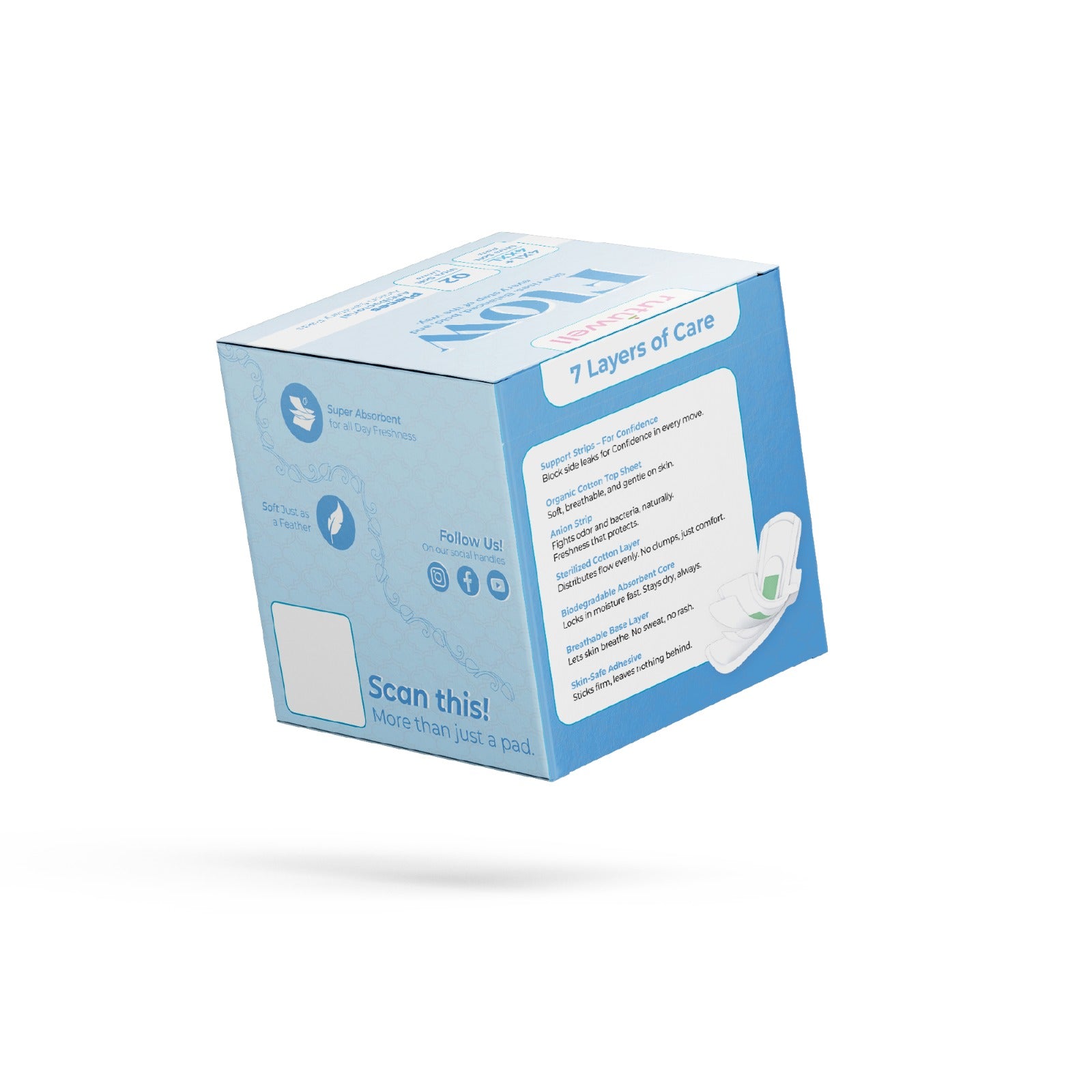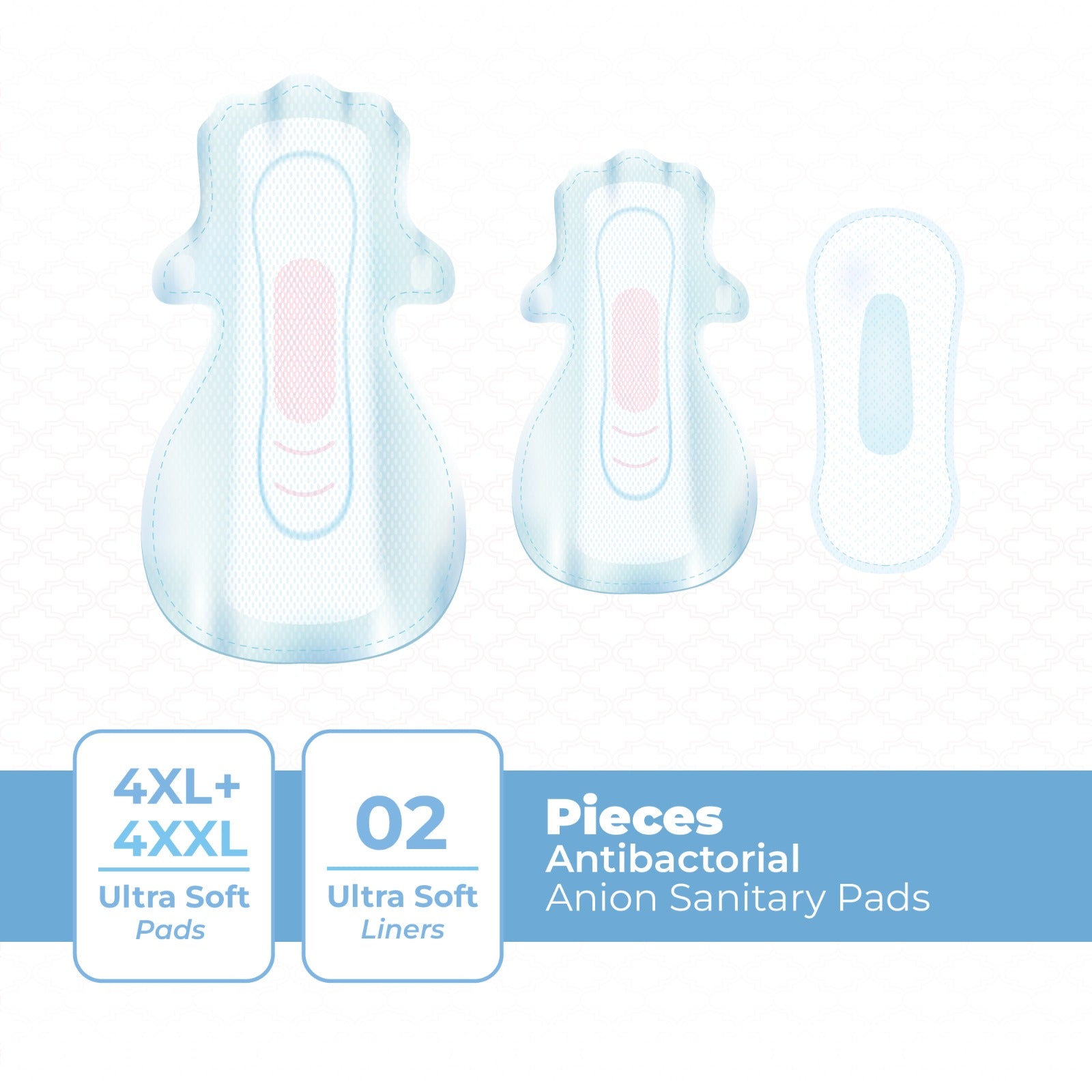 regular days, 4 XXL pads for night/heavy flow, and 2 panty liners for lighter days, this box ensures