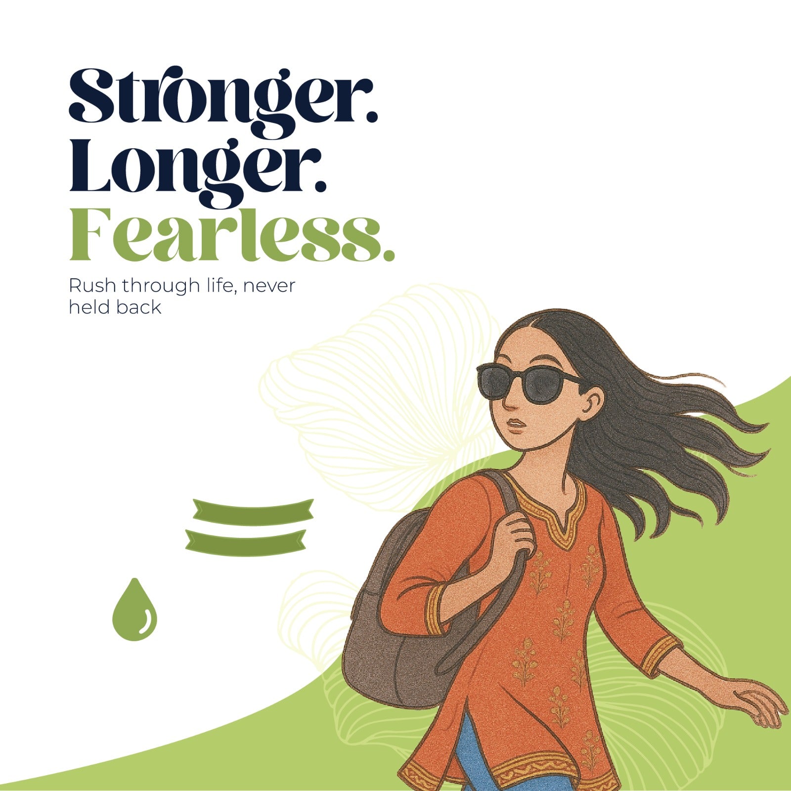 Rush is for the unstoppable crafted for active women who balance hustle and health. With its Active Shield layers and super-absorbent core, it stays in place, locks wetness instantly, and keeps you fresh through every rush of your day.